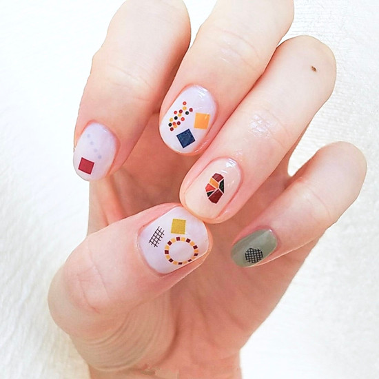 采用了黃色、肉粉色的跳色設計,同時配合了暈染美甲,既溫柔又不會顯得很復雜喲~
